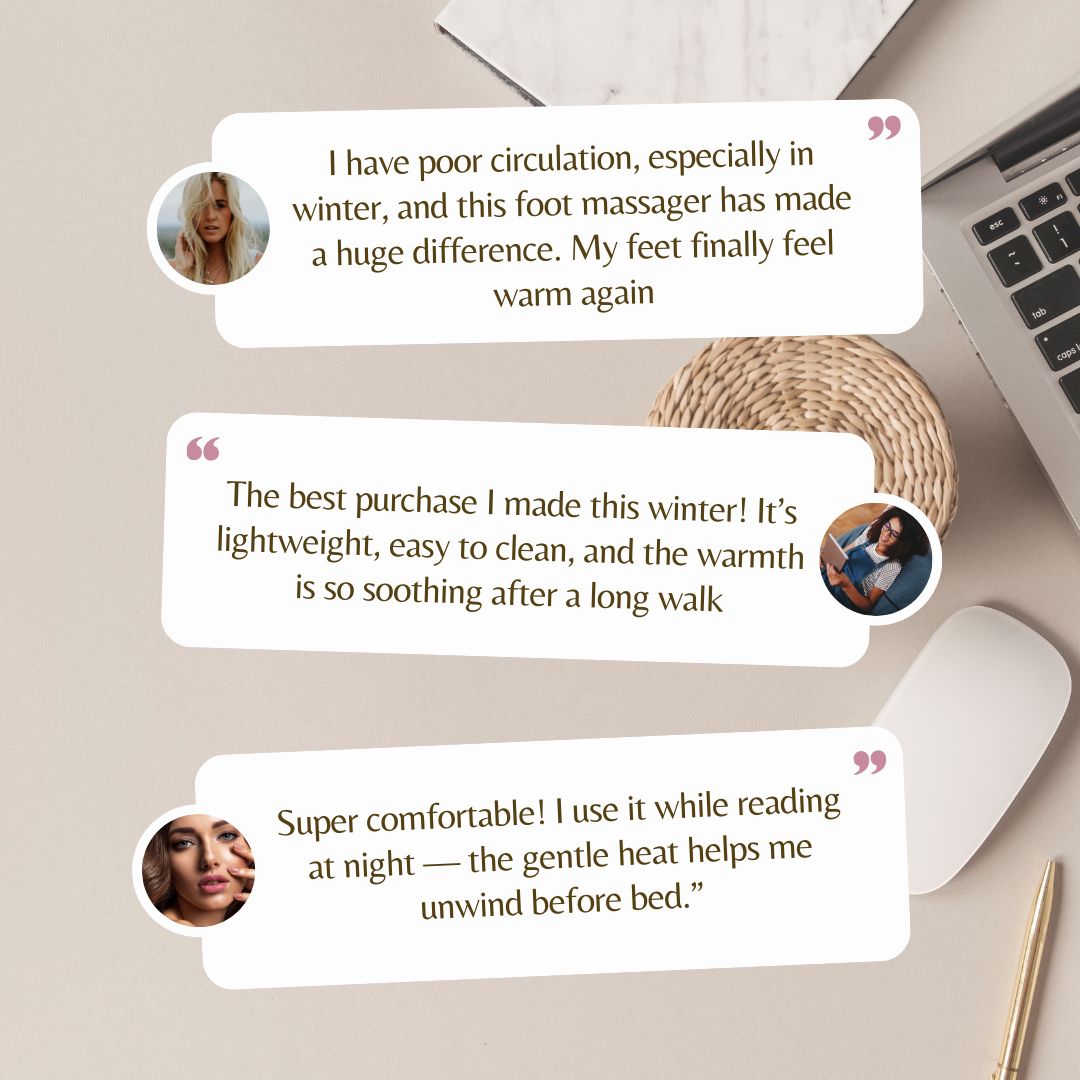 The massager provides gentle, soothing heat—perfect for keeping your feet warm during cold winter days without getting too hot.